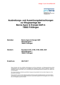 Anlage 2 zum Umweltbericht Ausbreitungs- und Auswirkungsbetrachtungen zur Biogasanlage der Benne Agrar & Energie GbR in 78665 Frittlingen Betreiber: Benne Agrar & Energie GbR Bihrenberghof 1 78665…